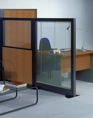 | Biombos de cristal, cristal doble, cristal laminar 5+5 mm, con marco y sin marco, bases metalicas en forma de T y redondas, con persiana veneciana entre cristales, posiblidad de vinilarlo y personalizarlo con el anagrama de su empresa, o cualquier foto o dibujo . |