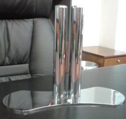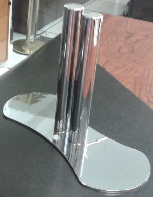 Peana (base) fabricada en chapa y cromada, preparada para montar panel de cristal de altura maxima de 180, con cristal laminar de 5+5 mm.